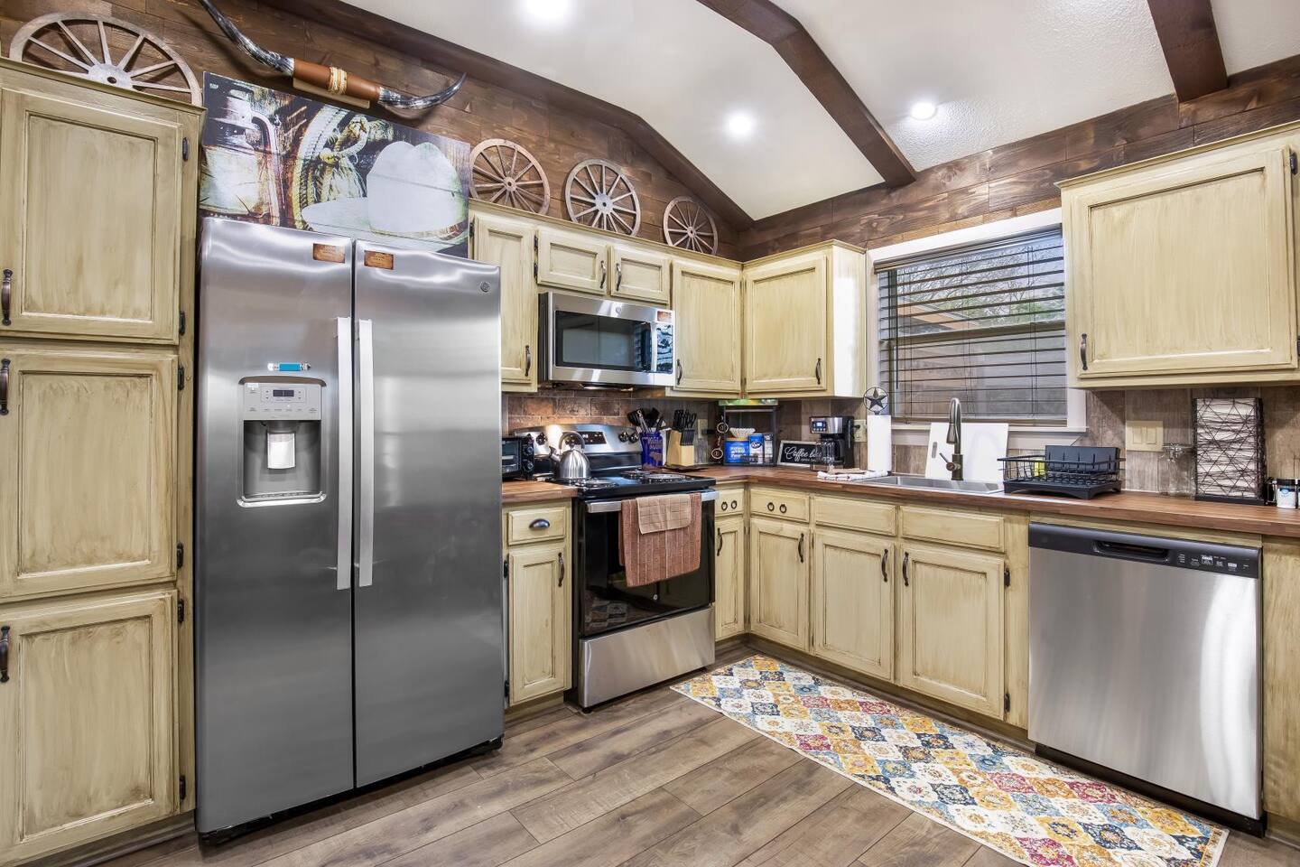 Located about 1 mile from the stockyards, our newly renovated Cowboy Bungalow is Cowboy themed, and warmly appointed with accent cedar walls, new faux Wood Flooring, custom cabinetry Refinish, new appliances, all queen size beds, and new furniture